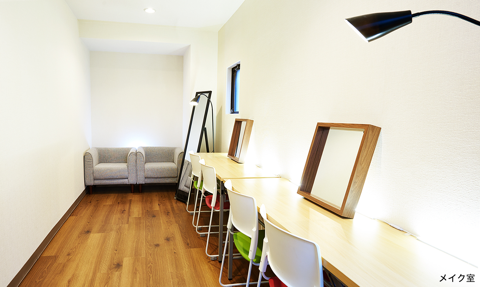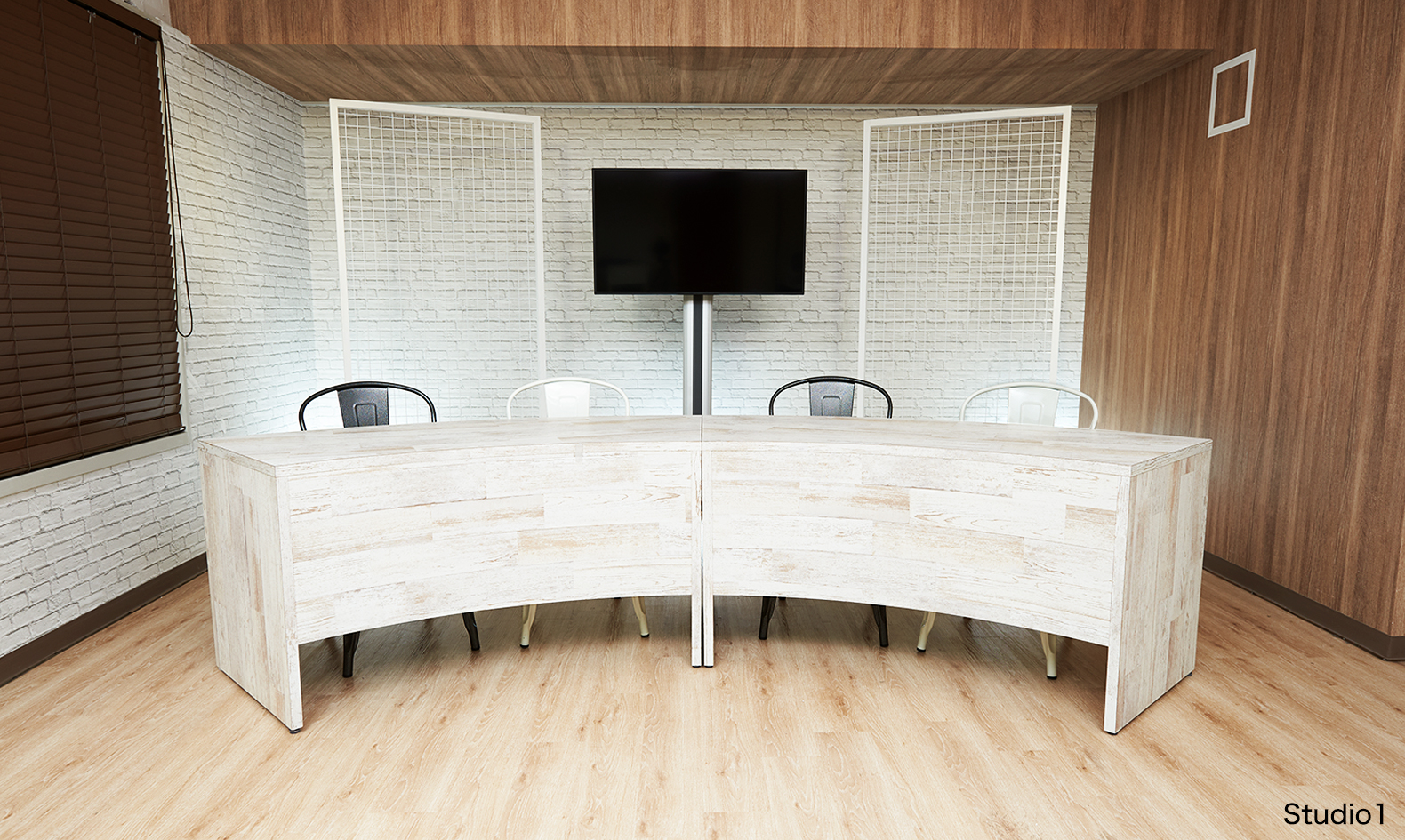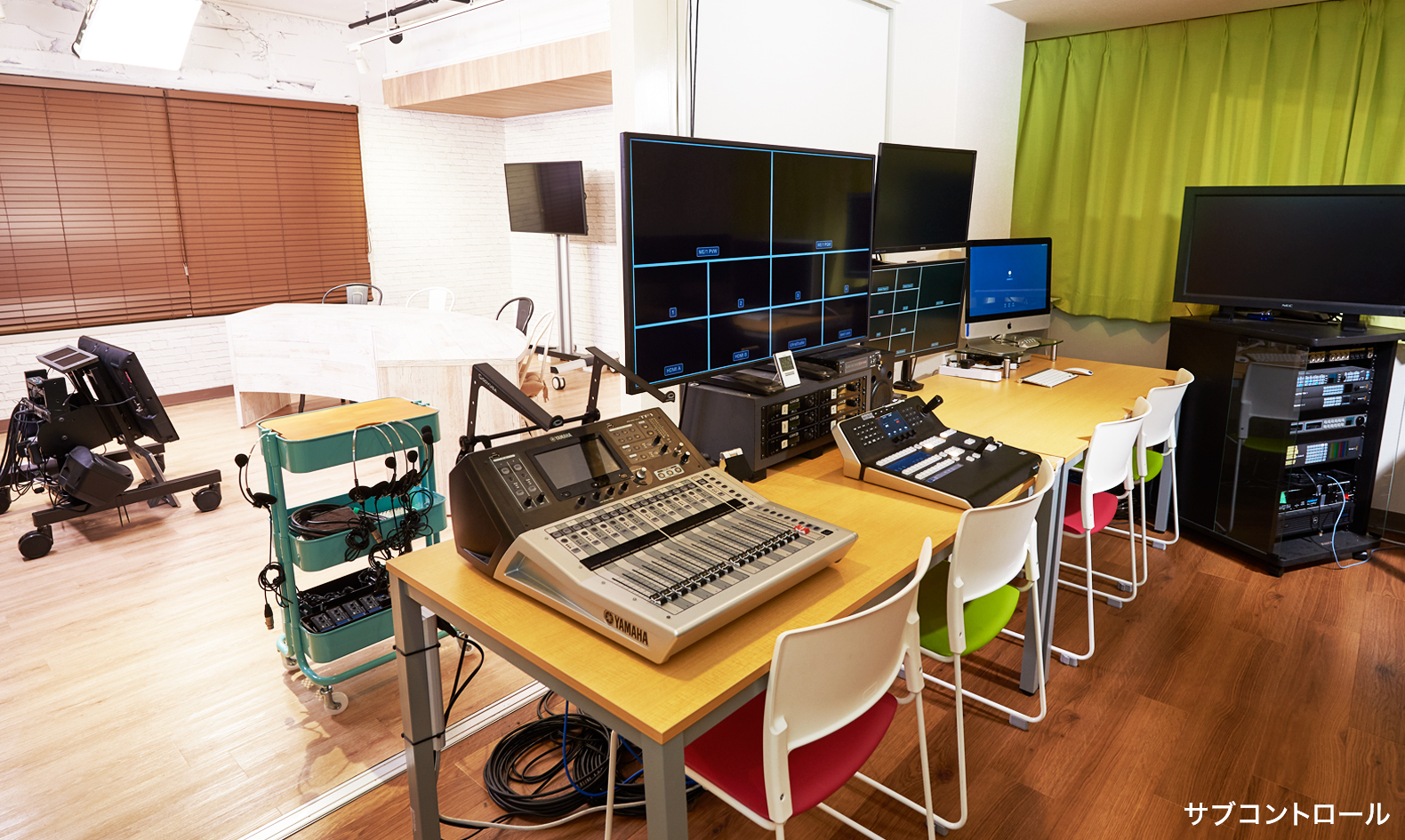 グリーンバックカーテンも常設になりますので合成配信も手間なく行えます。
